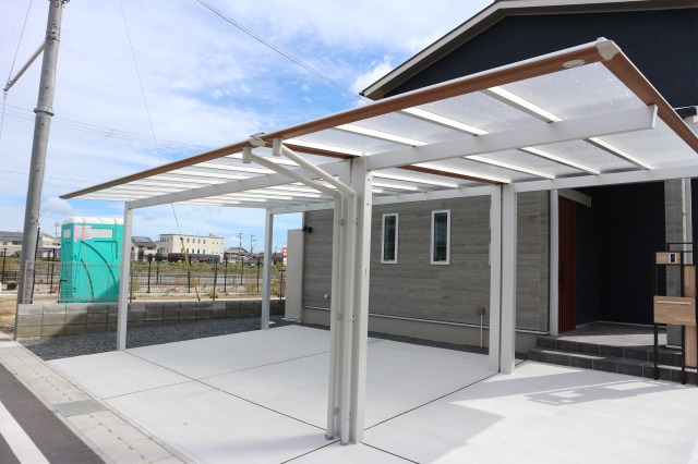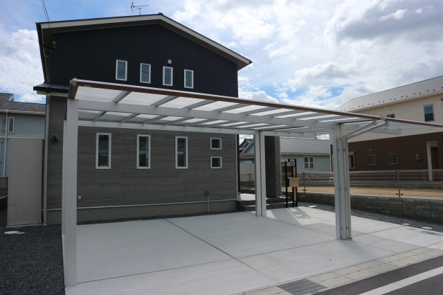 カーポートは「スカイリード」の2台用と1台用を組み合わせて設置。