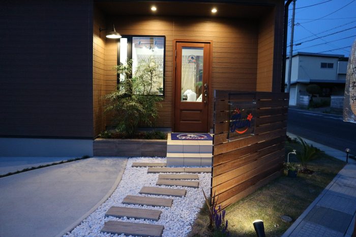 自然ウッドをふんだんに使用し柔らかいエクステリア・外構をイメージしました。