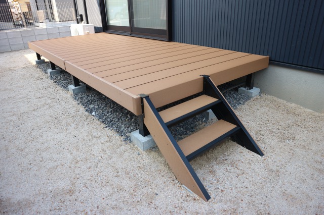 人工木でメンテナンスが容易、しかも天然木のような温かみのあるデッキライフが実現されます。