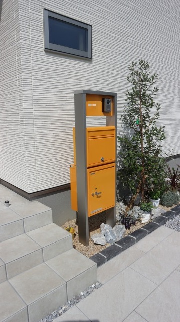 一目見たら忘れられない鮮やかな黄色の宅配ボックス付きポスト。