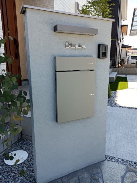 門柱に宅配ボックス付きポストを埋め込んだ機能門柱。