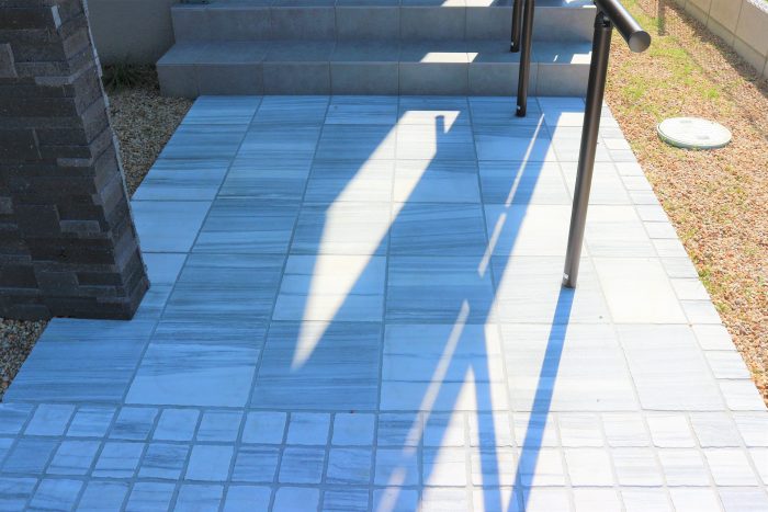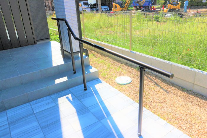 お母様の事と将来の為にアプローチには、手すりを採用。