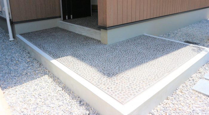 またアプローチの桜島溶岩石の黒、グレー系の色幅がモダンな雰囲気を醸し出します。